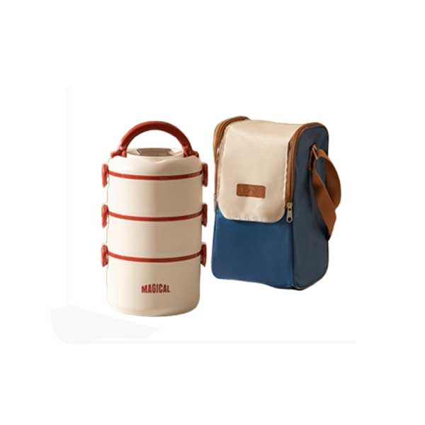 日式304不鏽鋼三層保溫飯盒附贈湯匙+保溫袋-微波款2500ML